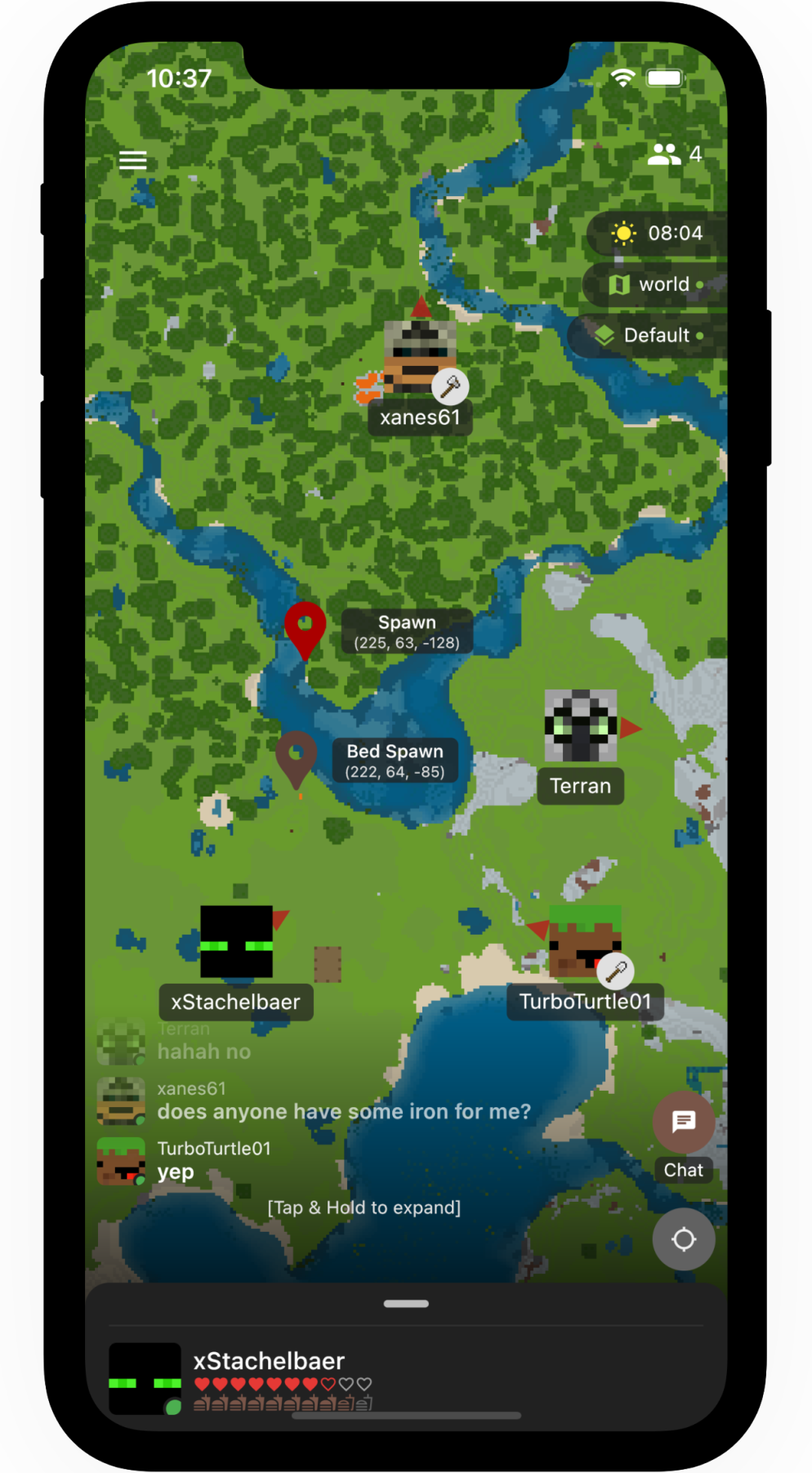 Minecraft is a very popular block building game which can be played in a self hosted multiplayer world with friends. LiveKit leverages the SpigotMC API in order to bridge the connection from App to the Minecraft world and displays a 2D representation of the map, processing block changes and player position updates in real time.